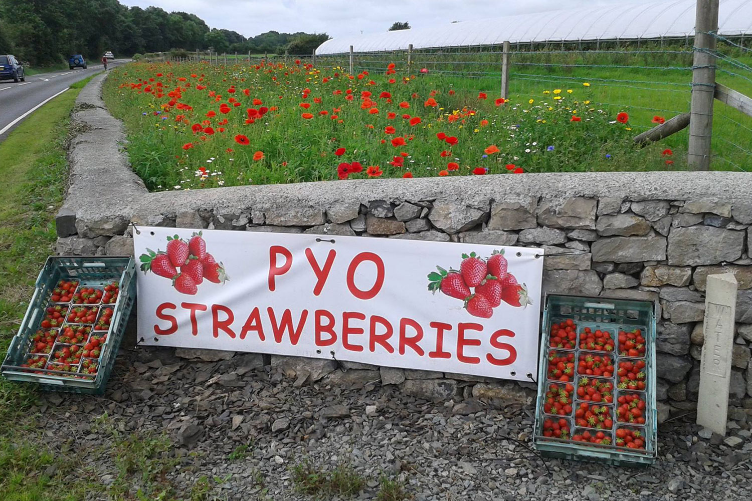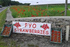 Our PYO site is on the A5025 just one mile from Menai Bridge in the direction of Pentraeth, LL59 5RR (Look out for our signs)